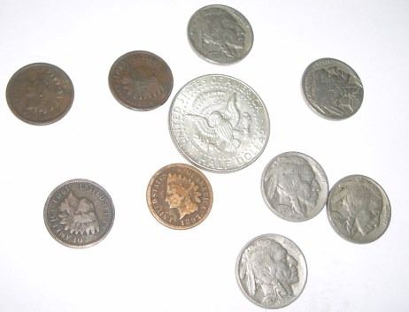 10 TOTAL MIXED U.S. COINS INCLUDES KENNEDY SILVER HALF DOLLAR/INDIAN HEAD CENTS & BUFFALO NICKELS!! COINS CAME OUT OF SAFE!! ***Coin, Currency & All Items Listed in this auction - Grades, Conditions and Values are not Safe Deposit Coins LLC Responsibilty. Grades, Condition and Values are determined by Consigner(s) & Buyers ONLY