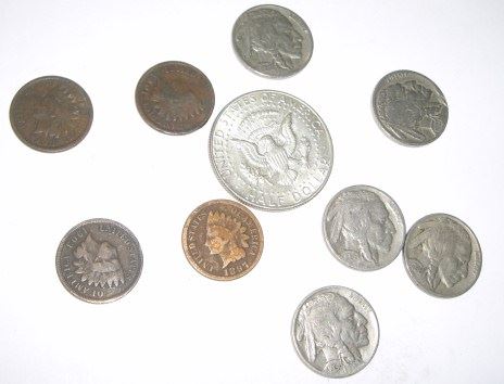 10 TOTAL U.S. COINS INCLUDES SILVER KENNEDY HALF DOLLAR/INDIAN HEAD CENTS & BUFFALO NICKELS!! COINS CAME OUT OF SAFE!! ***Coin, Currency & All Items Listed in this auction - Grades, Conditions and Values are not Safe Deposit Coins LLC Responsibilty. Grades, Condition and Values are determined by Consigner(s) & Buyers ONLY