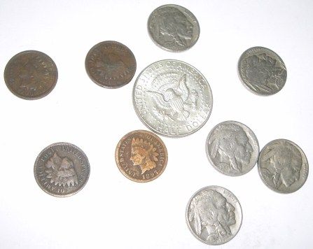 10 TOTAL U.S. COINS INCLUDING SILVER KENNEDY HALF DOLLAR/INDIAN HEAD PENNIES & BUFFALO NICKELS *MIXED DATES & GRADES-NICE EARLY U.S. COINS*!! COINS CAME OUT OF SAFE BOX!! ***Coin, Currency & All Items Listed in this auction - Grades, Conditions and Values are not Safe Deposit Coins LLC Responsibilty. Grades, Condition and Values are determined by Consigner(s) & Buyers