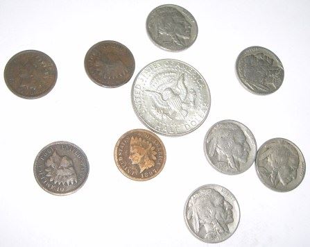 10 TOTAL U.S. COINS INCLUDING SILVER KENNEDY HALF DOLLAR/INDIAN HEAD PENNIES & BUFFALO NICKELS *MIXED DATES & GRADES-NICE EARLY U.S. COINS*!! COINS CAME OUT OF SAFE BOX!! ***Coin, Currency & All Items Listed in this auction - Grades, Conditions and Values are not Safe Deposit Coins LLC Responsibilty. Grades, Condition and Values are determined by Consigner(s) & Buyers