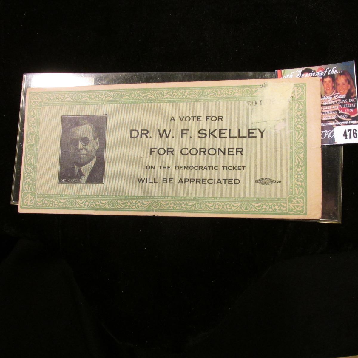 $10 "The Confederate States of America Fac-Simile" Advertising Note "A Vote for Dr. W.F. Skelley For Coroner on the Democratic Ticket Will Be Appreciated".