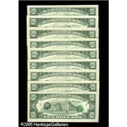 <B>$10 Third Printing on Reverse Federal Reserve Note Errors</B></I><BR>$10 1977A FRN New York Choice CU; $10 1977A FRN Richmond Gem Crisp Uncirculated; $10 1977A FRN San Francisco Gem Crisp Uncirculated<BR>$10 1981 FRN Minneapolis Gem Crisp Uncirculated<BR>$10 1985 FRN Philadelphia AU; $10 1985 FRN Cleveland VF; $10 1985 St. Louis Gem Crisp Uncirculated<BR>$10 1988A Atlanta Gem Crisp Uncirculated; $10 1988A Dallas Gem Crisp Uncirculated.<BR> 9 notes Lot:15161