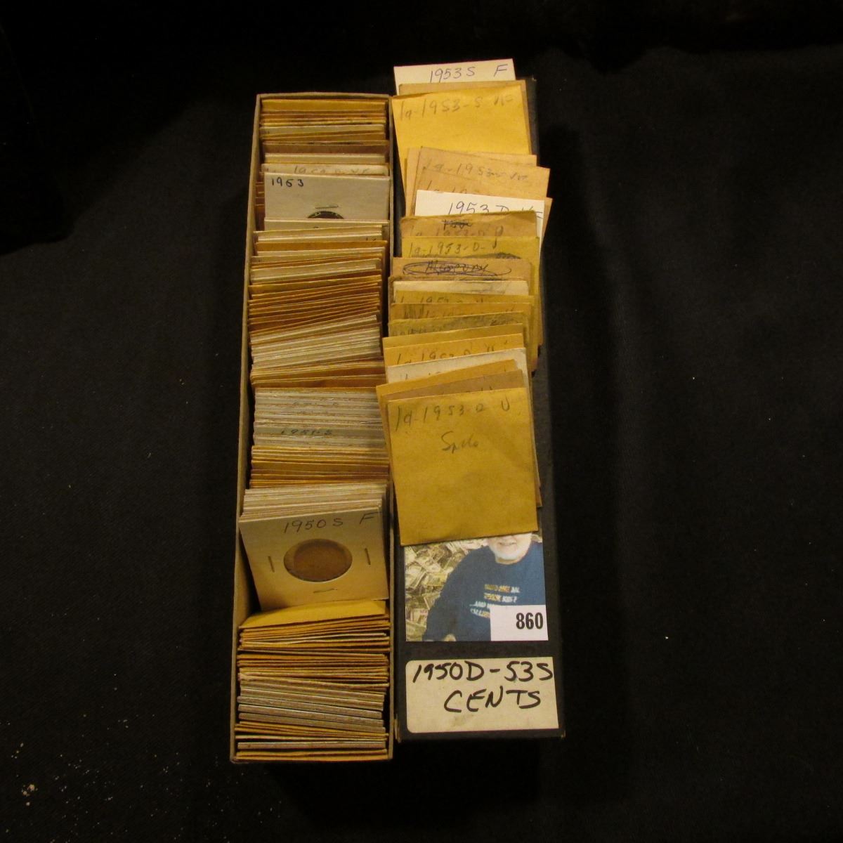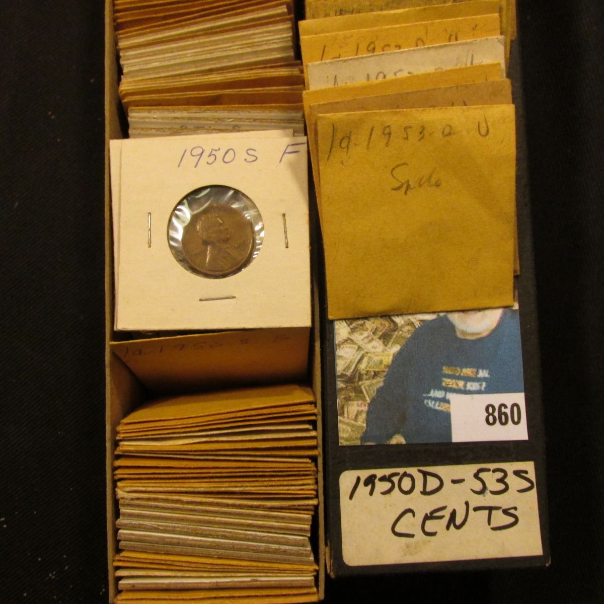 10" Two by Two Stock box full of 1950-53 High grade Lincoln Cents of which many are in manilla envelopes.