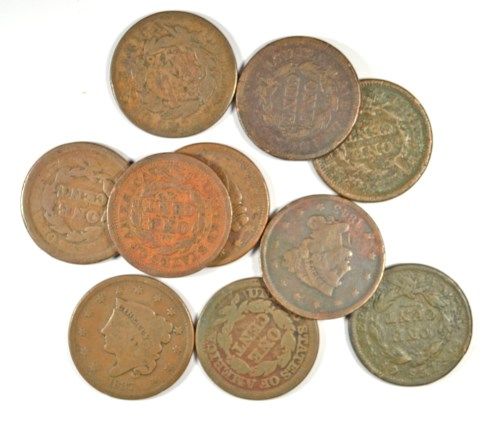 ( 10 ) U.S. LARGE CENTS WITH READABLE DATES, DECENT CONDITION