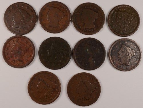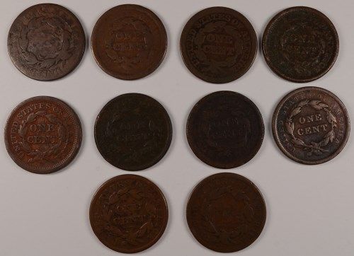 ( 10 ) U.S. LARGE CENTS WITH READABLE DATES, DECENT CONDITION