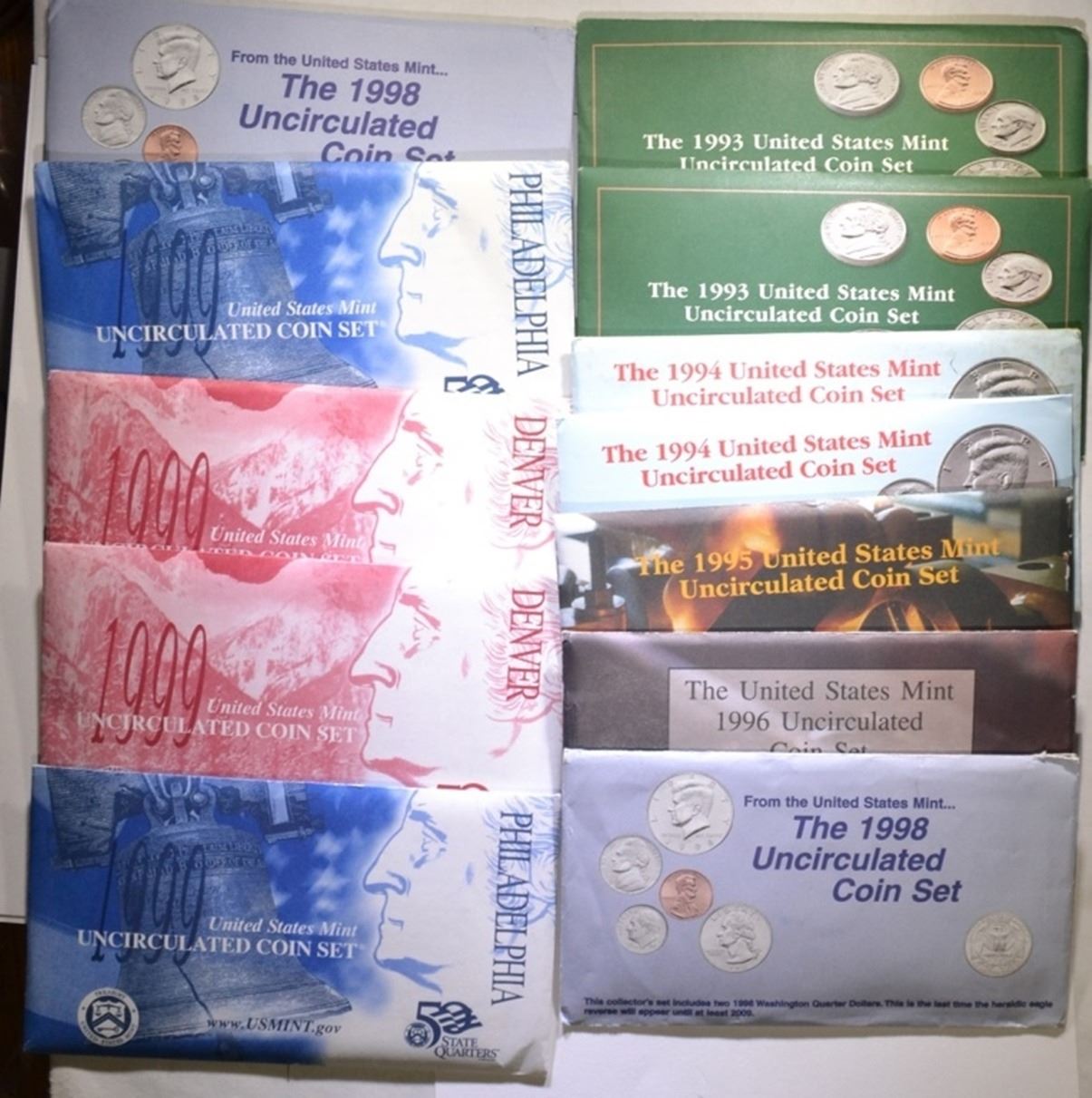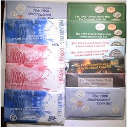 2- 1993, 2- 1994, 1- 1995, 1- 1996, 2- 1998, 2- 1999 IN ORIGINAL ENVELOPES. ESTIMATE $65 - $75.