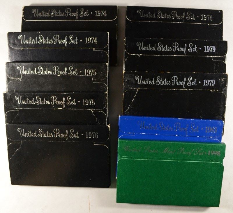 (10) U.S. PROOF SETS ORIG ENVELOPES: 2-1974, 2-1975, 2-1976, 2-1979, 1983, 1998