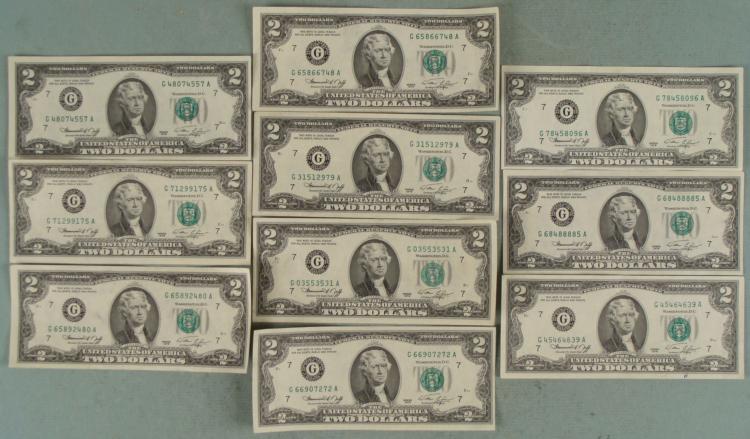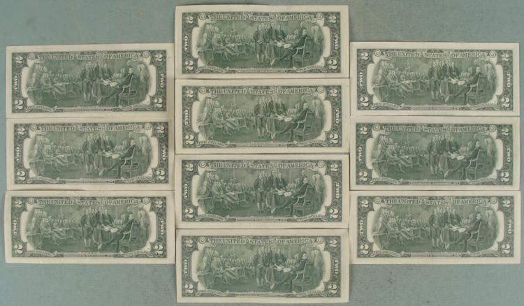 (10) 1976 $2 Two Dollar Notes * Mint mark: G (Chicago)Condition: Uncirculated