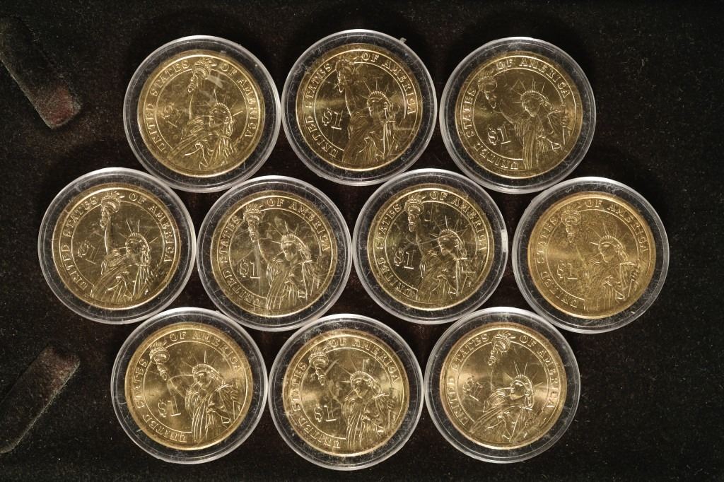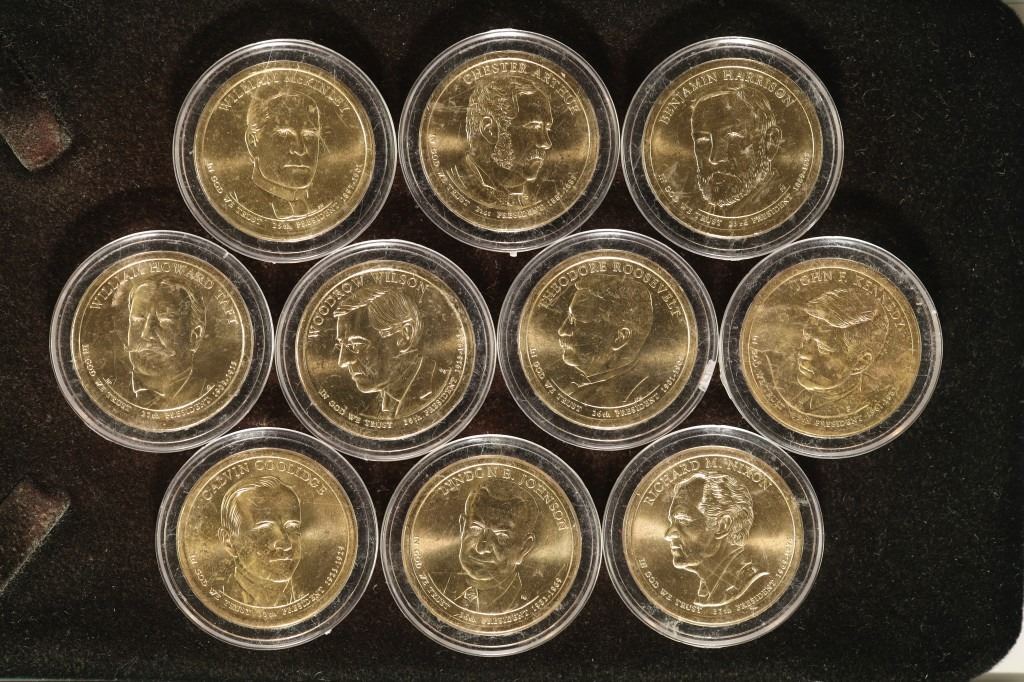 HARRISON, TAFT, WILSON, ROOSEVELT, KENNEDY, COOLIDGE, JOHNSON AND NIXON. IN HARD PLASTIC CAPSULES