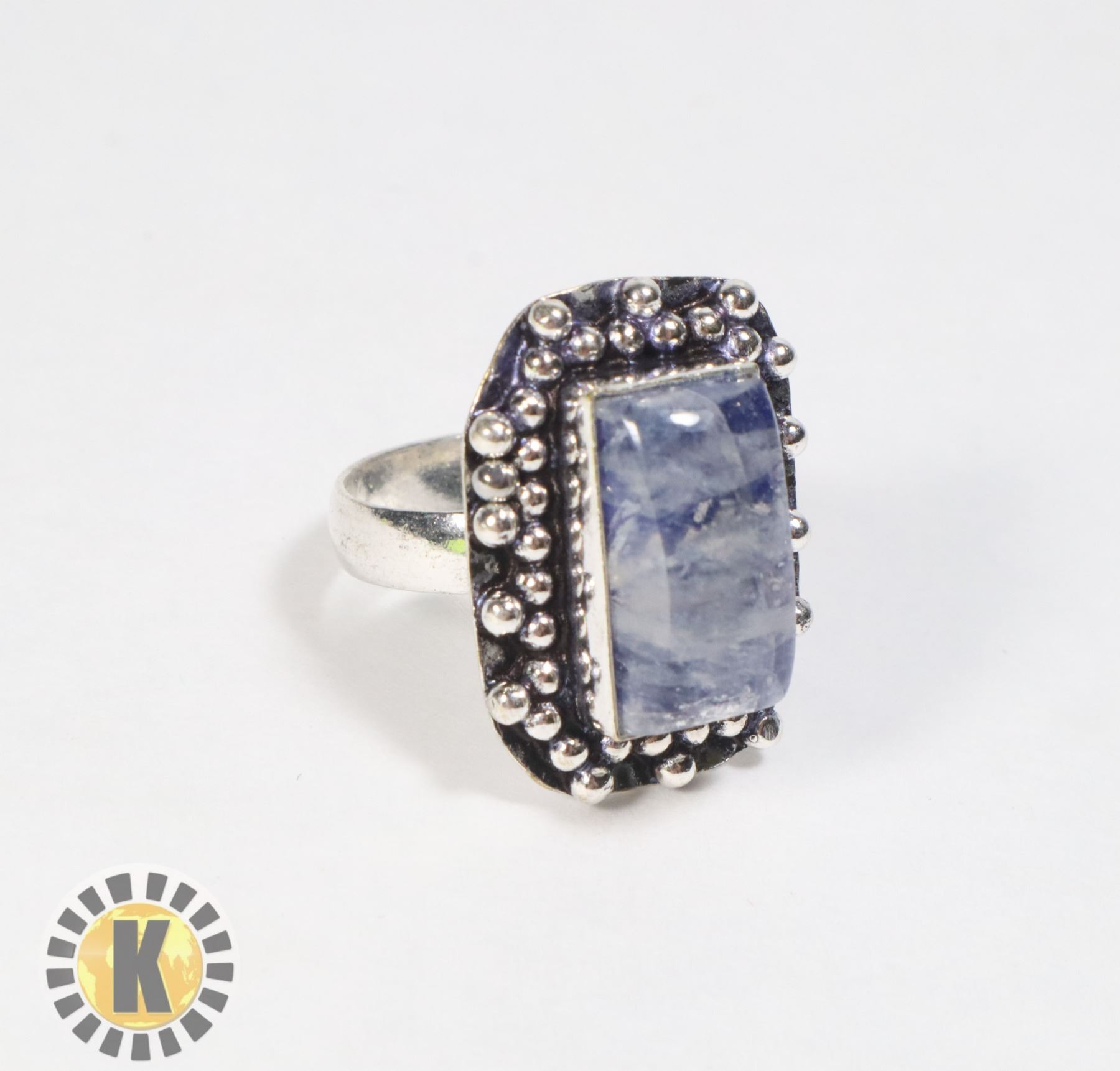 RECTANGULAR CUT WITH BEADBALL SETTING, RING IS SIZE 8, STAMPED 925 SILVER PLATE. JEWELRY***ITEM(S) LOCATED IN LETHBRIDGE ALBERTA. SMALL ITEMS ONLY ARE AVAILABLE FOR FREE TRANSPORT TO EDMONTON OFFICE (READ AUCTION DETAILS FOR MORE INFORMATION)
