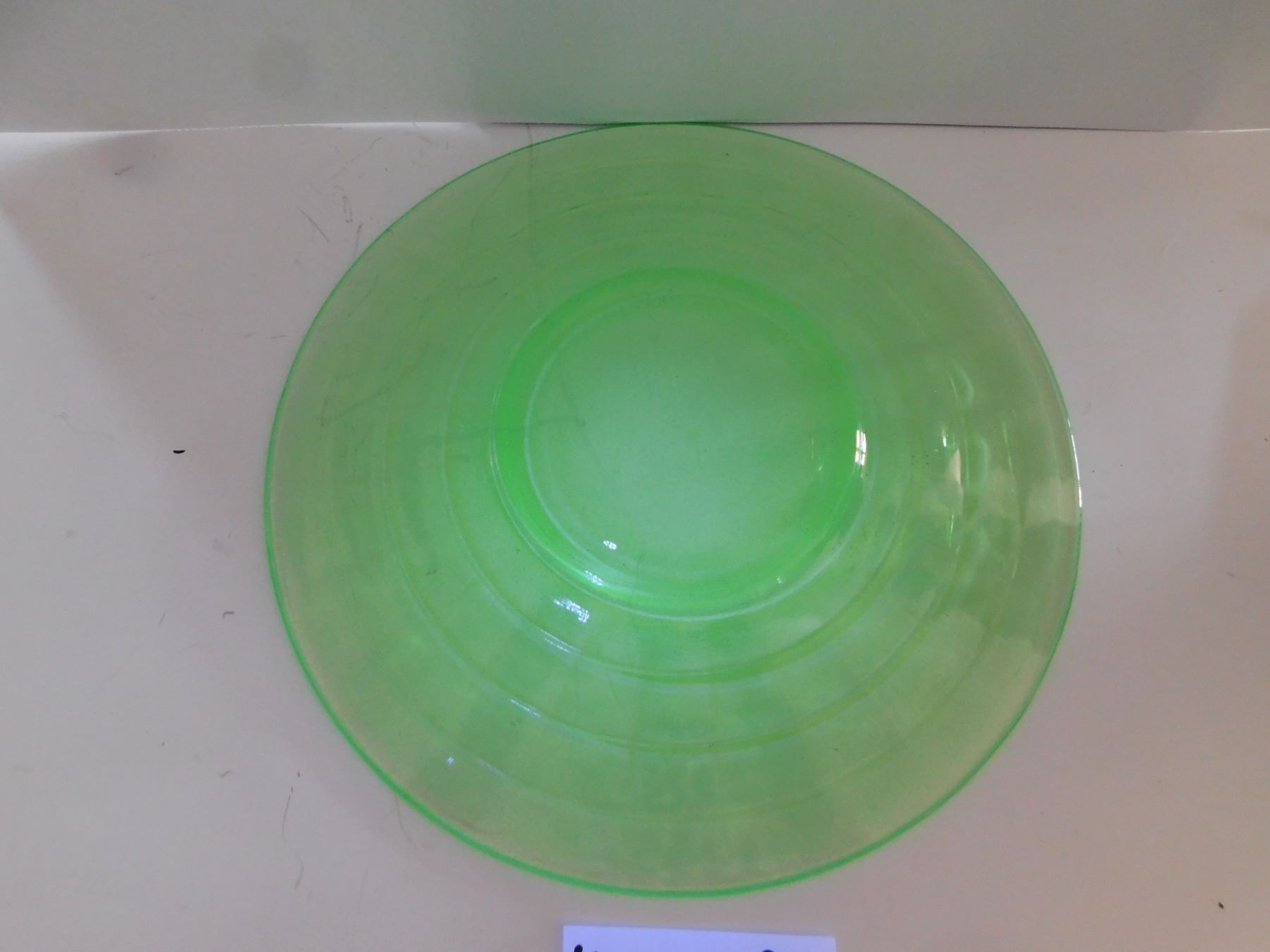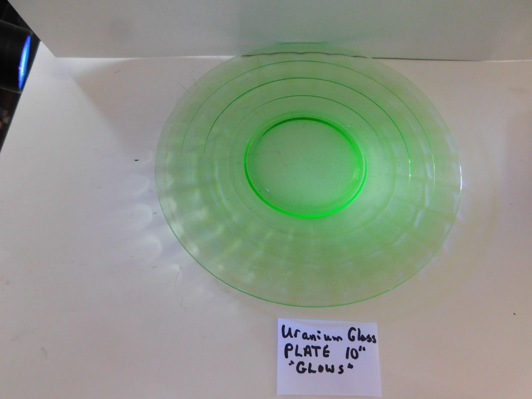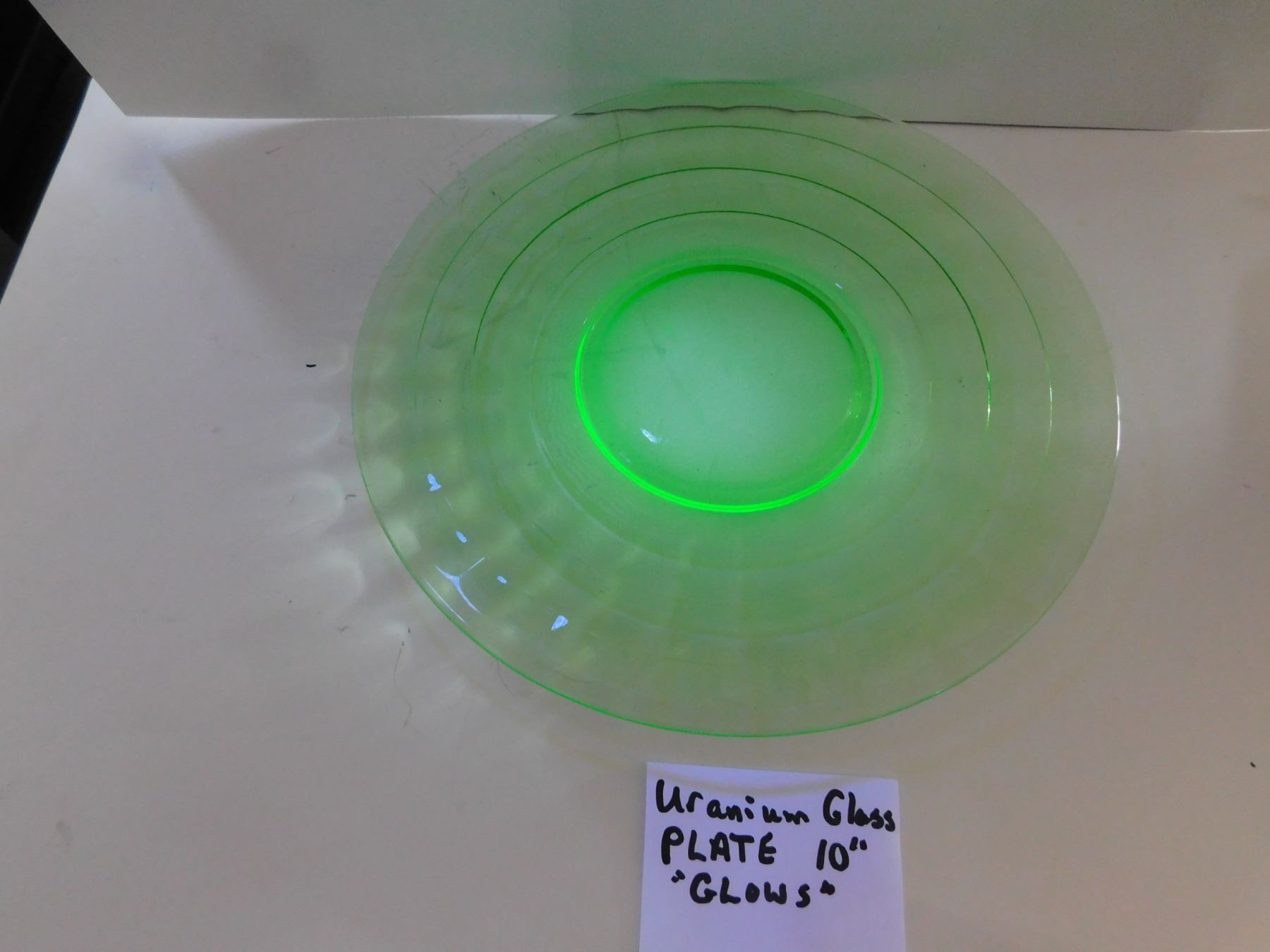 10” URANIUM GLASS SUPPER PLATE “GLOWS BRIGHTLY”