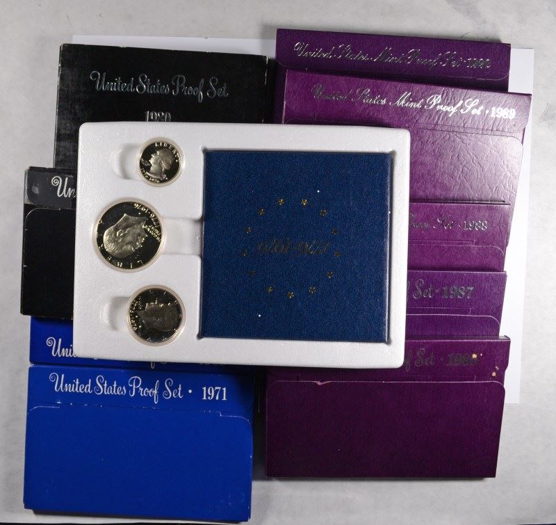 10-US MINT PROOF SETS (68,71,74,76 (3 PC),80,85,87,88,89,92)