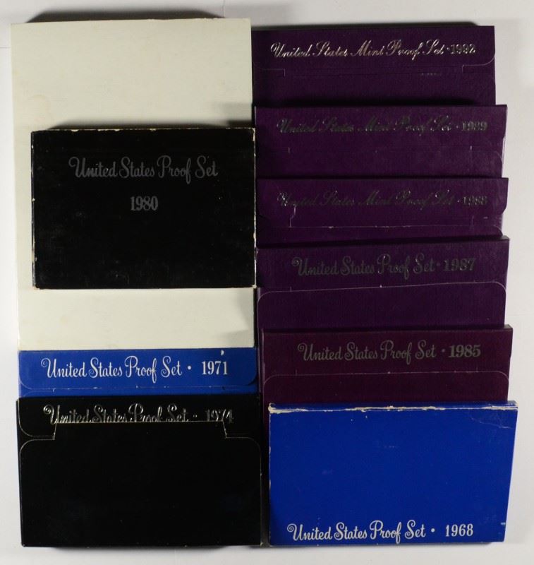 10-US MINT PROOF SETS (68,71,74,76(3 PC),80,85,87,88,89,92)