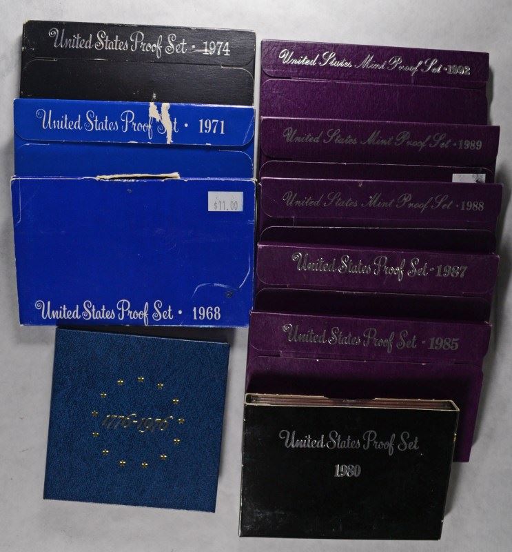 10-US MINT PROOF SETS (68,71,74,76 (3PC), 80,85,87,88,89,92)
