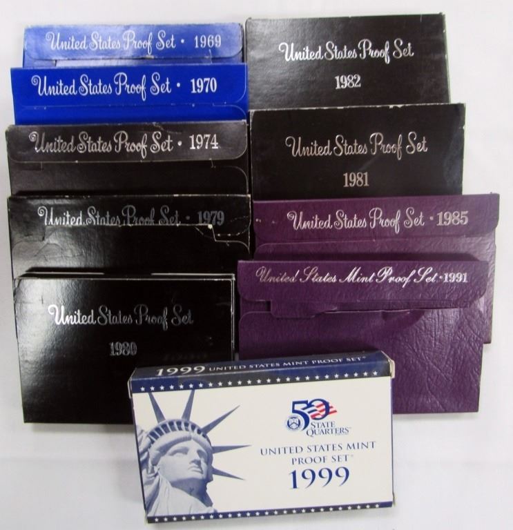 10 US PROOF SETS- 1969, 1970, 1974, 1979, 1980, 19