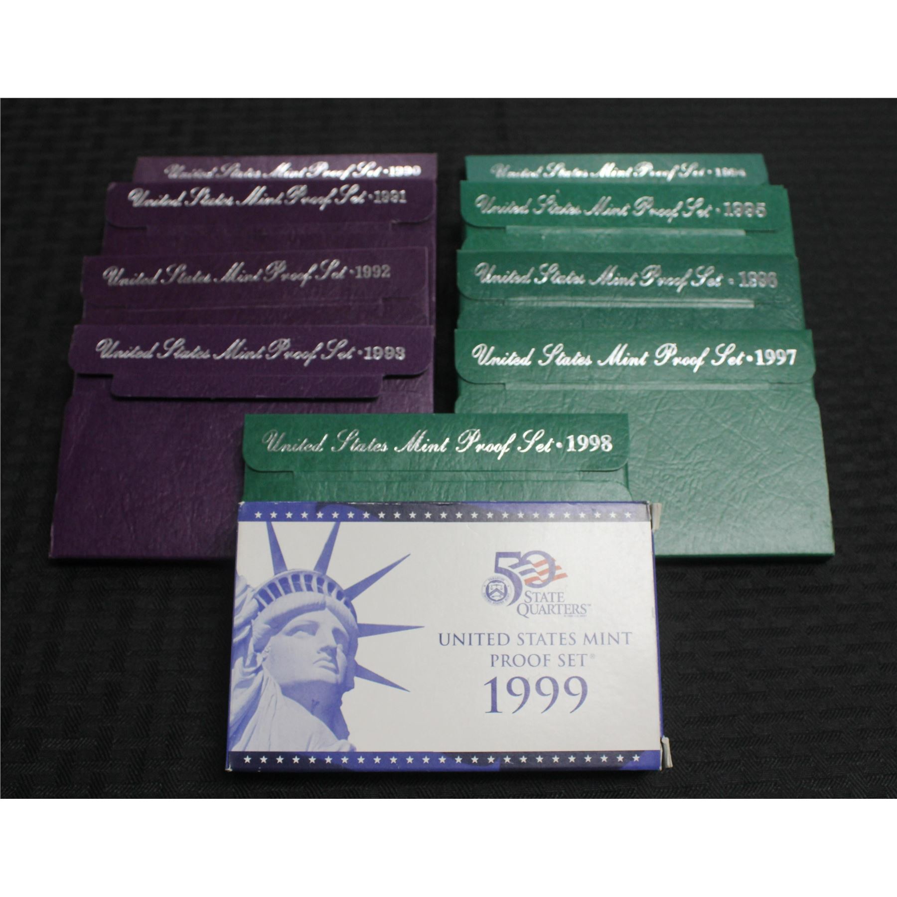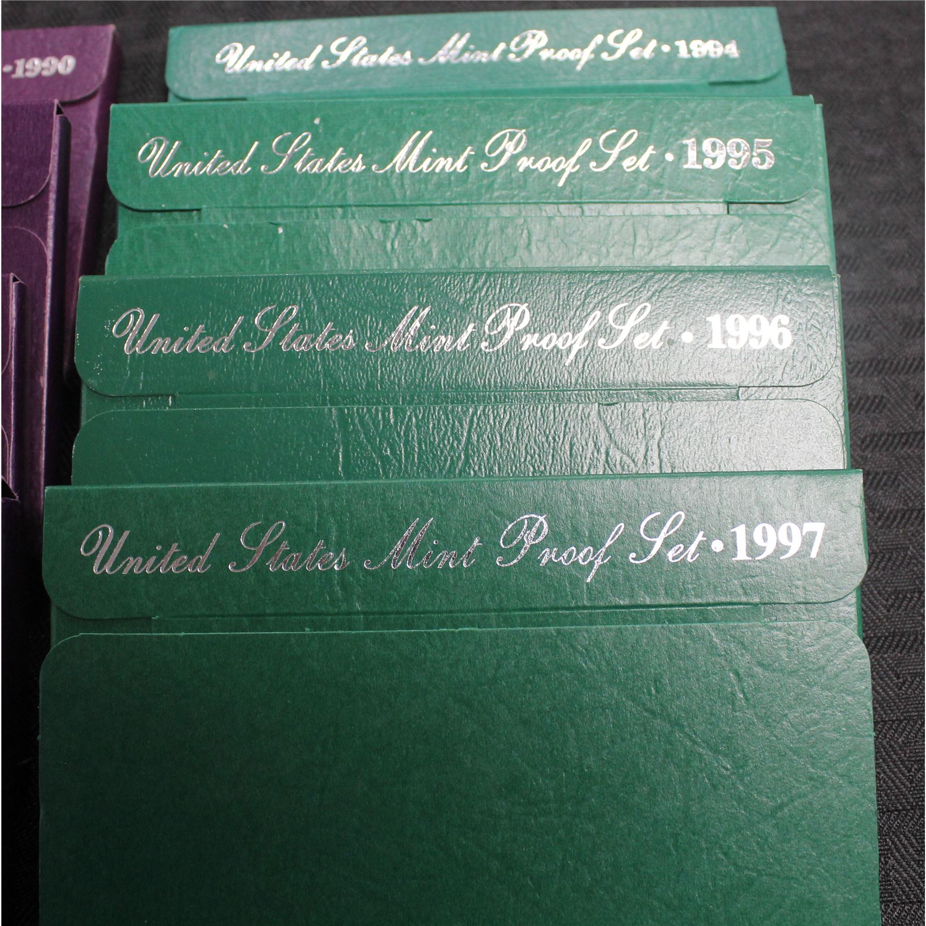 10 US Proof Sets 1990-1999. This item includes the 95, 97 and 1999 key date sets! All in original government issue boxes.