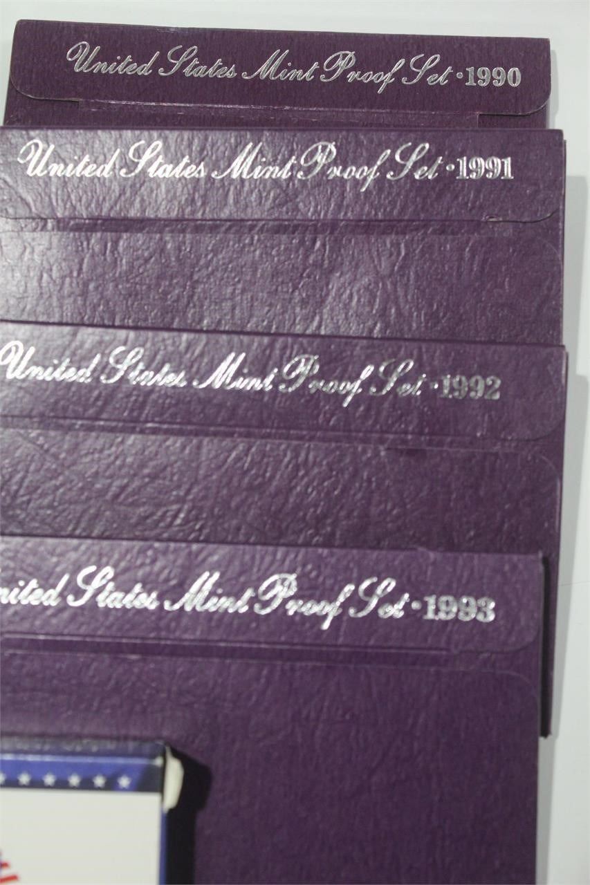 10 US Proof Sets 1990-1999. This item includes the 95, 97 and 1999 key date sets! All in original government issue boxes.