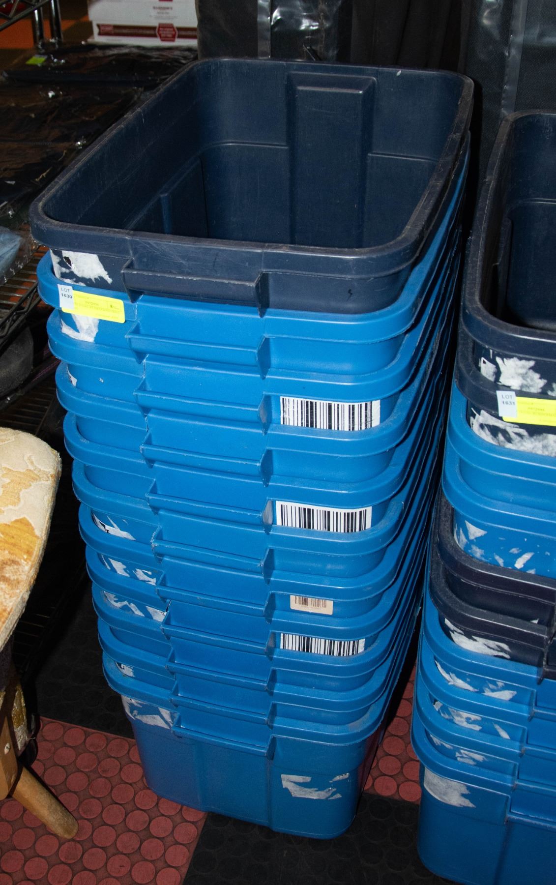 10 USED 14 GAL RUBBERMAID BINS - NO LIDS