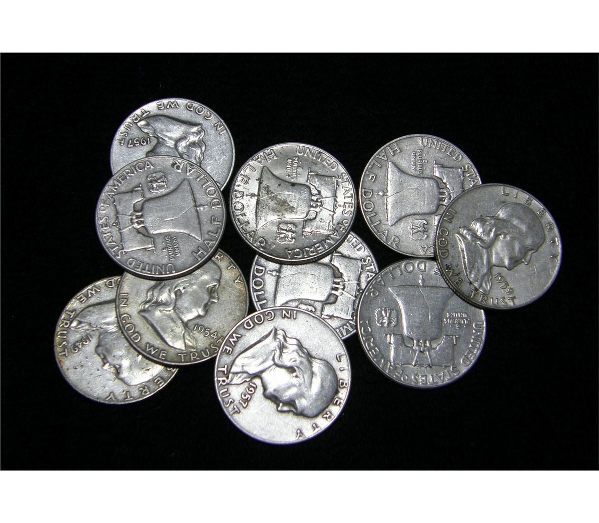 10 Unchecked Ben Franklin Half Dollars