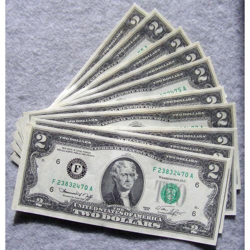 10 Uncirculated $2 Federal Reserve Notes - Series 1976 Sequentially Numbered