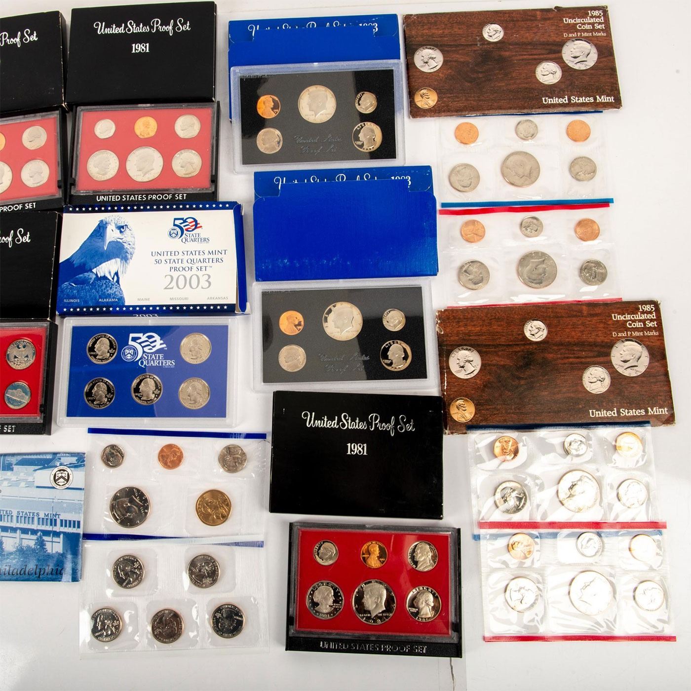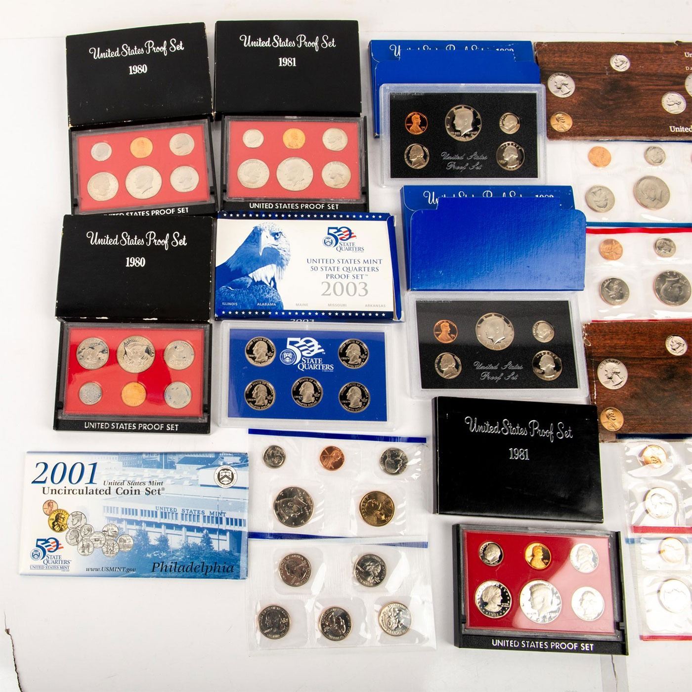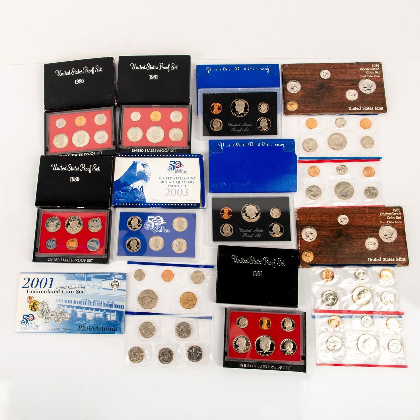 These Mint Silver Proof sets include: 2 sets of 1980s, 2 sets of 1981s, 2 sets of 1983s, 2 sets of 1985s, 1 sets 2001, 1set 2003. Coins and Currency, Numismatists