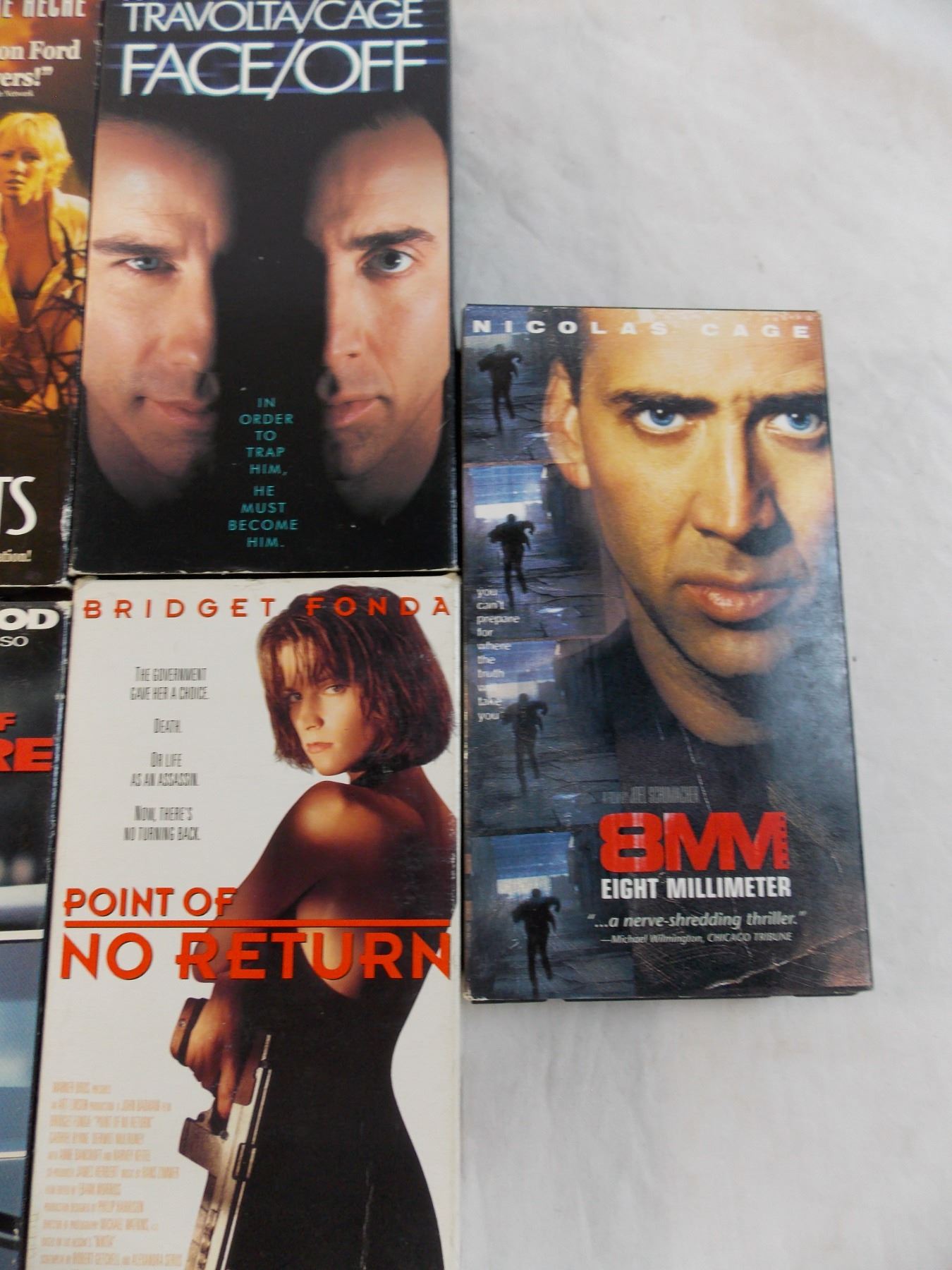 (10) VHS - Matrix, Face off, 8mm, Travolta, Ford, Cage