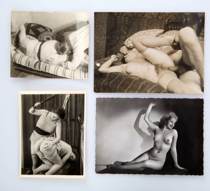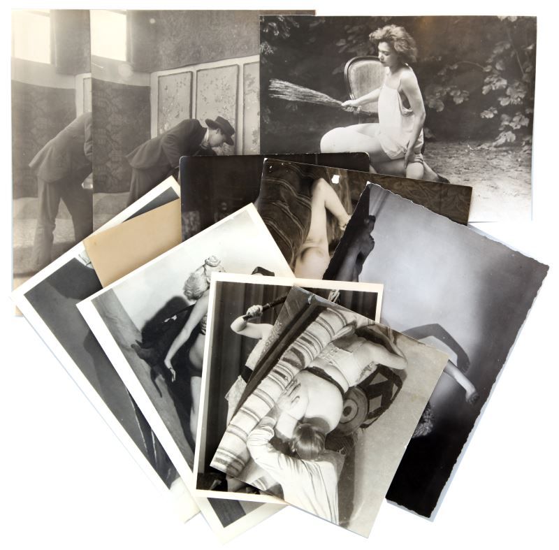 Collection of original photos, some bondage, art erotica and explicit adult material, 1920's and 1930's, 4 by 6 inches on average.