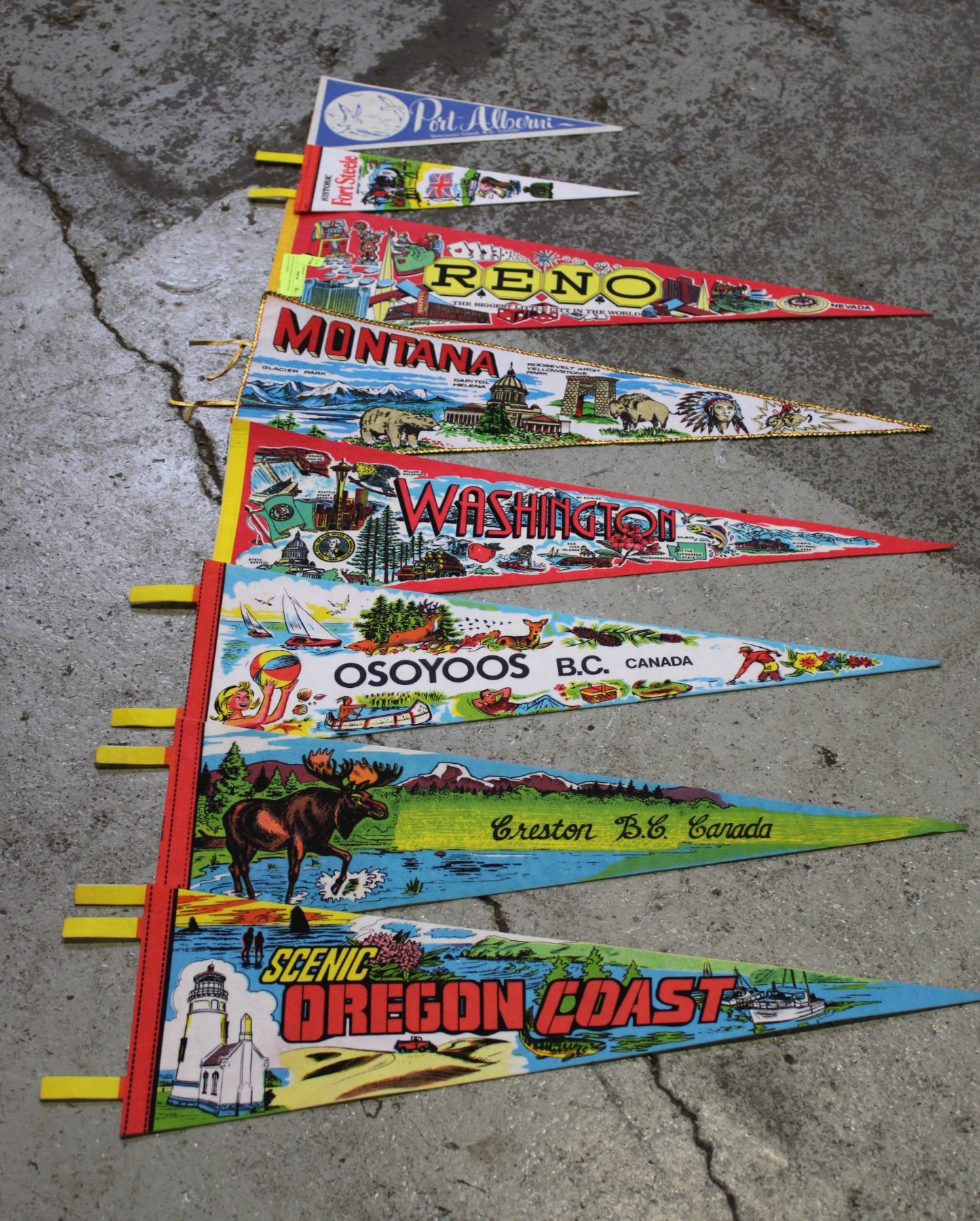 10 VINTAGE PENNANT SOUVENIR FLAG BANNERS