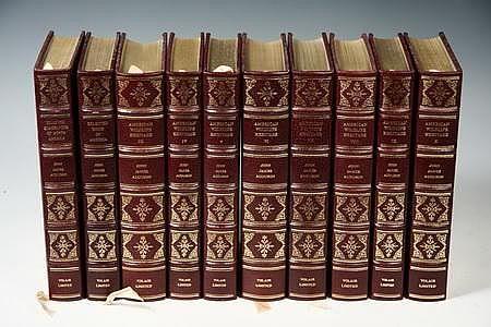 (10 VOL SET) AUDUBON - Selected Quadrupeds of North America; Selected Birds of North America; American Wildlife Heritage & Subscribers Index, First Edition, published by Volair Limited, Kent, Ohio, 1977-1979, in full leather bindings with gilt titles, decoration, raised spines, all edges gilt, moire silk endpapers, silk ribbon, fine printing from the original text with reprints of all the handcolored lithos of the original, 6 1/2 x 10 1/2, fine condition, most volumes unopened.