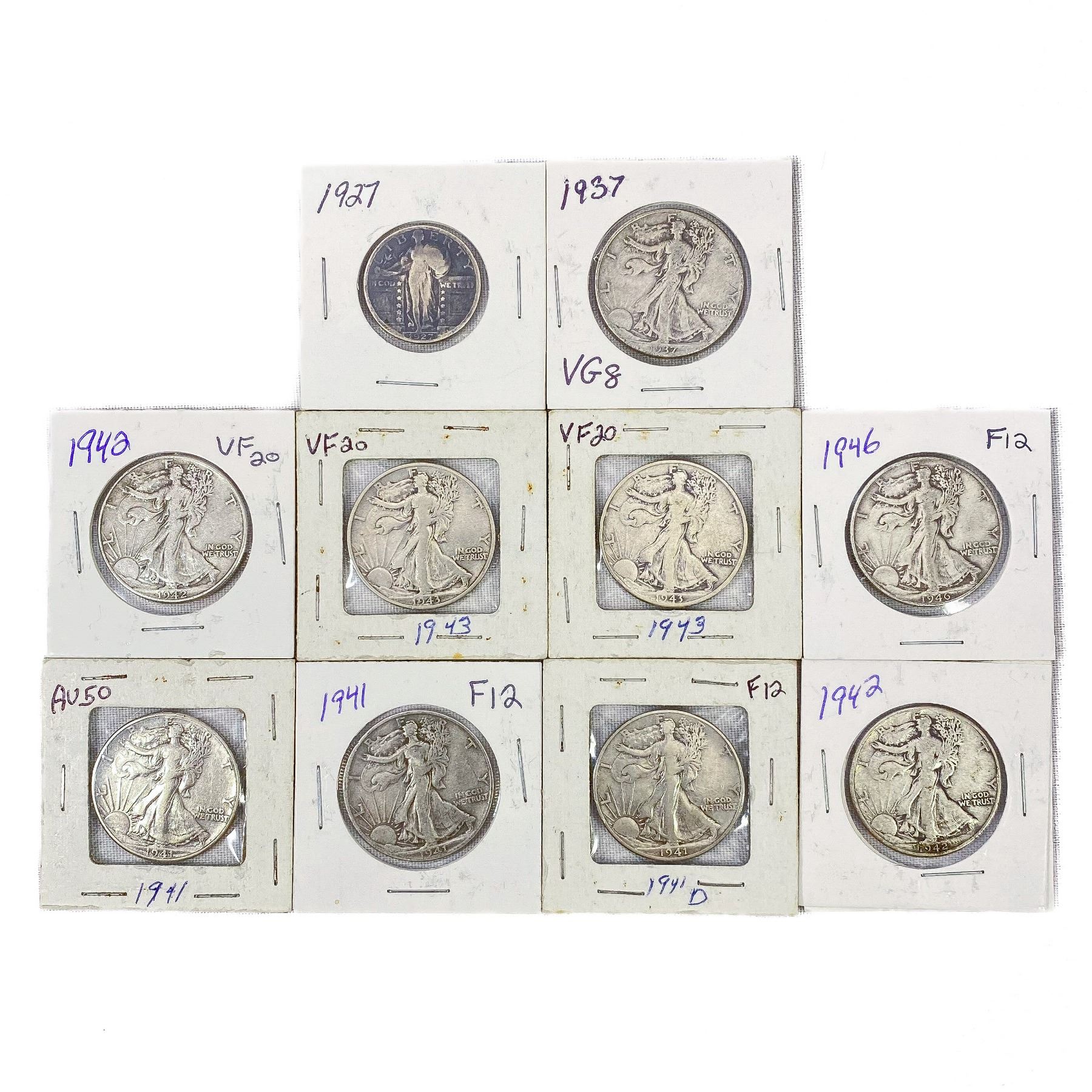 (10) Varied US Silver Coinage (1927, 1937, (2) 1