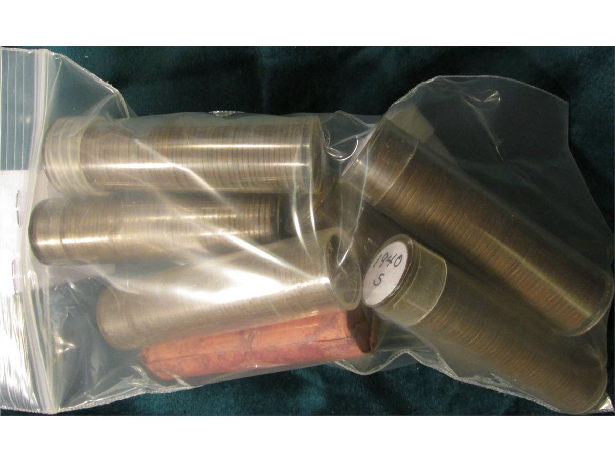 (10) Various rolls of Circulated 1940 era San Francisco Wheat Cents. All Solid date rolls. I never counted the coins in the rolls in this group but one appears a little short.