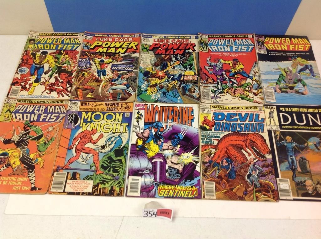 Titles include Devil Dinosaur, Dune, Wolverine, Moon Knight, Power man and Iron Fist
