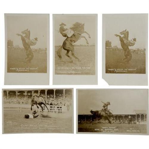 <B>Lot of 10 Vintage Post Cards Picturing Rodeo Cowboys In Action,</B></I> all unused, some with divided back, and others white bordered. Most are very good or better.<BR><BR><b>Shipping:</b> Flat Material, Small (<a target="_blank" href="http://www.heritageauctions.com/common/shipping.php">view shipping information</a>)