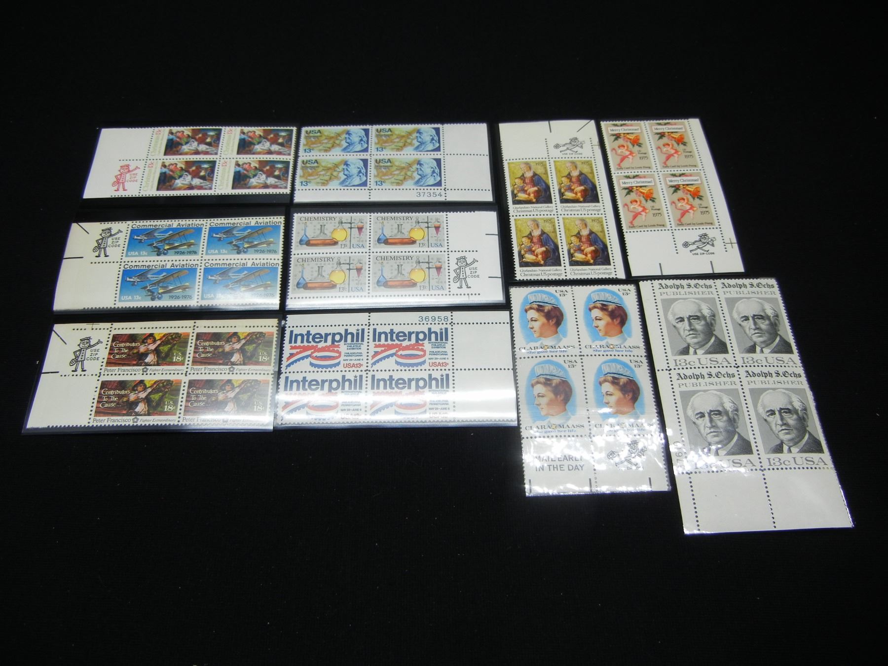 10 Vintage Unused Plate Blocks of Unused Stamps