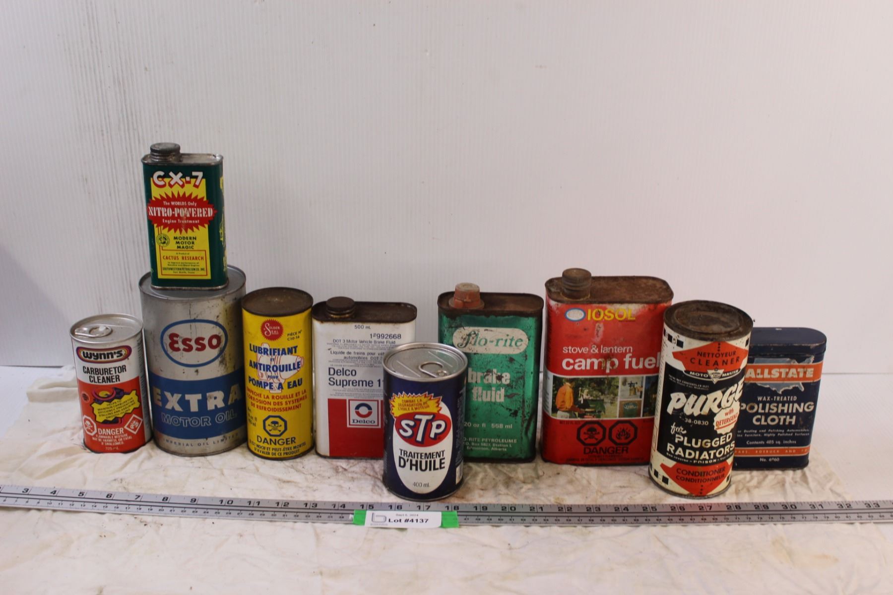(10) Vintage Vehicle Fluid Cans: Esso, STP, Wynn's, Misc. - Some Full, Some Empty
