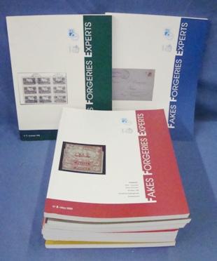 Excellent reference set of (10)volumes of the annual FFE report from Switzerland. Each volumes covers a wide range of famous fakes & forgeries found on stamps and covers. Great reading. Est.$75-125