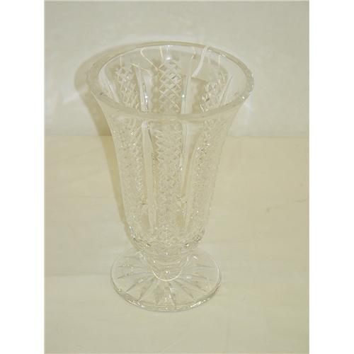 10" WATERFORD CRYSTAL FOOTED VASE W/ DIAMOND PATTERN-MARKED ON BASE W/ ACID STAMP - WEAR;