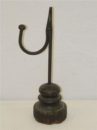 10" WROUGHT IRON RUSH LIGHT MOUNTED ON WOODEN BASE - BASE W/ WORM HOLES, NORMAL WEAR