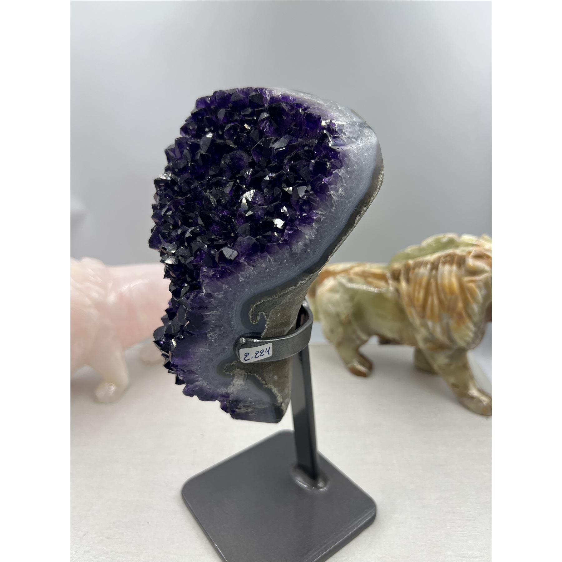 10 X 4.3 INCH HIGH GRADE URUGYAN AMETHYST CLUSTER ON METAL STAND