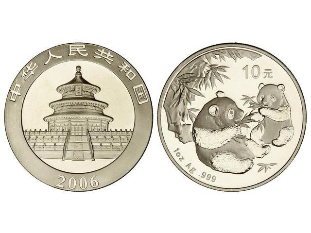 10 Yuan. 2006. 31,20 grs. AR. Dos Pandas sentados con bambú. KM-1664. PROOF.