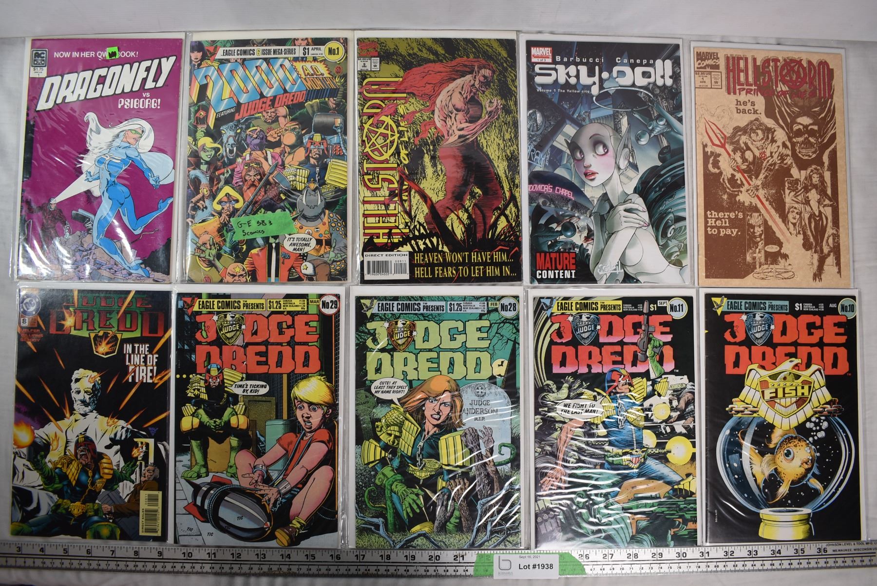 (10) assorted comics. Judge Dredd 1st edition, 2 hellstorm comics good condition