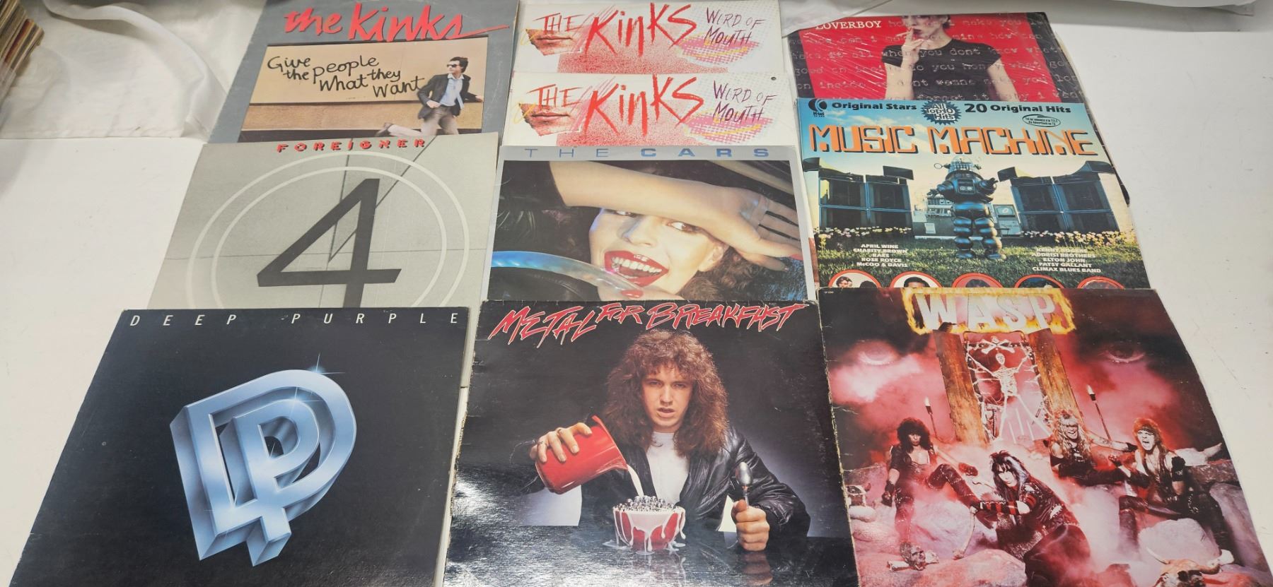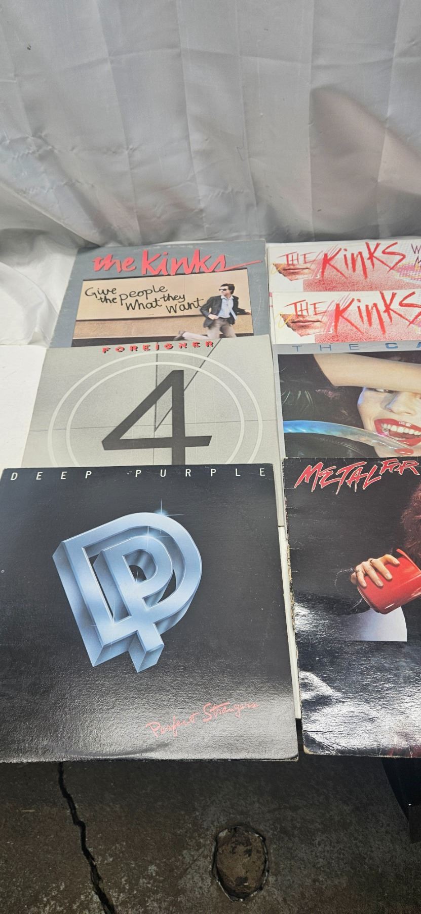 10 assorted records. Deep Purple, The Kinks, The Cars, etc.