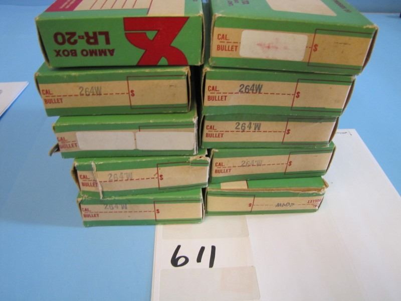 10 boxes of Gevelot unprimed 264 Winchester brass, 20/box - 1 box has two brass out.