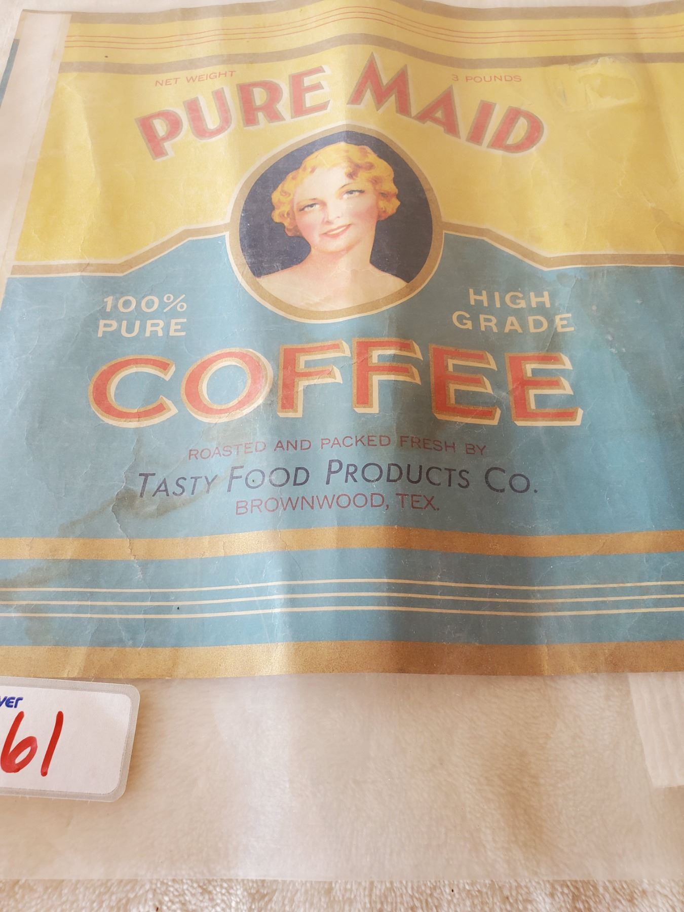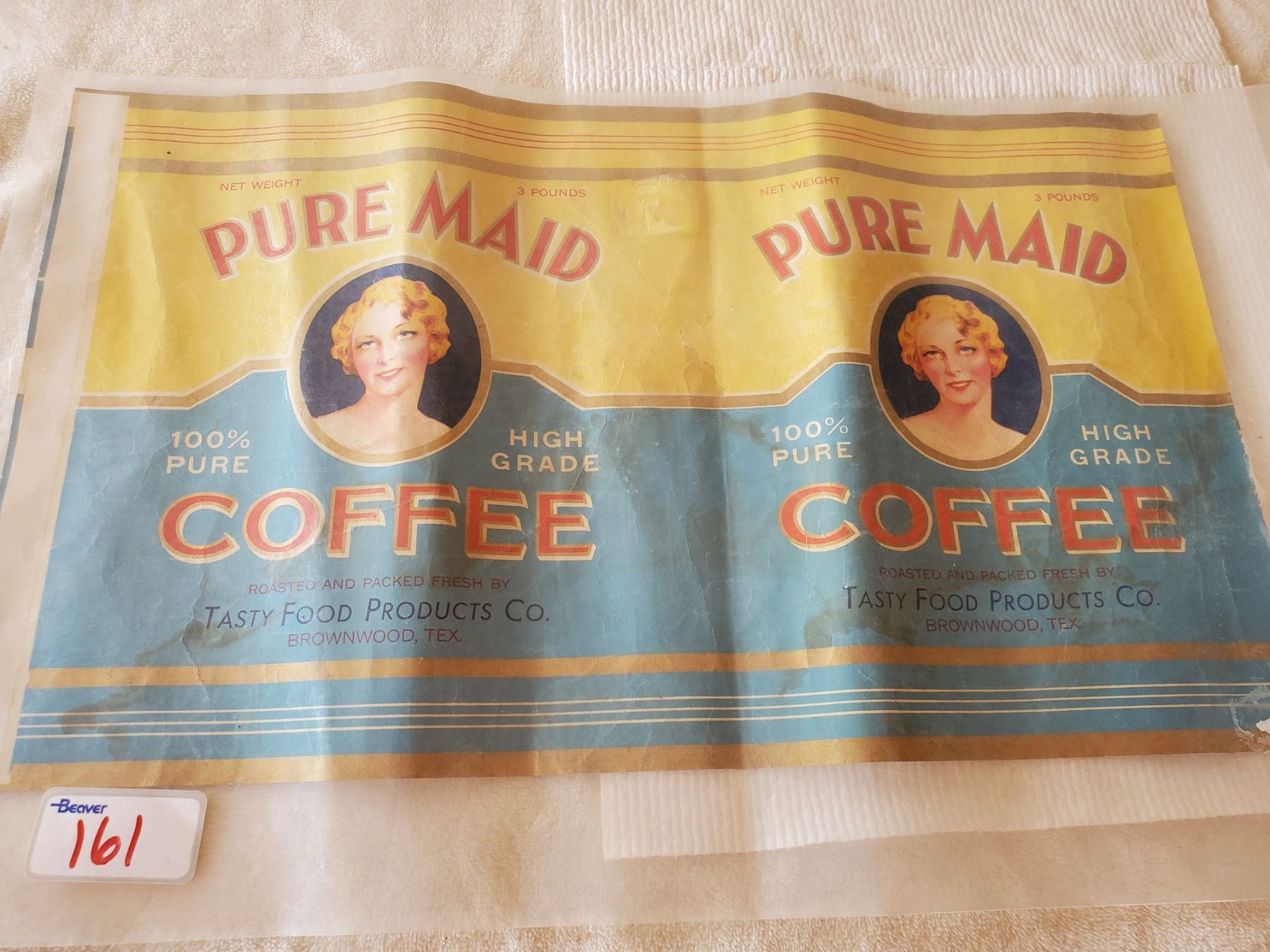 10" by 16" PURE MAID COFFEE PAPER LABEL, 3 POUND, FRAMEABLE