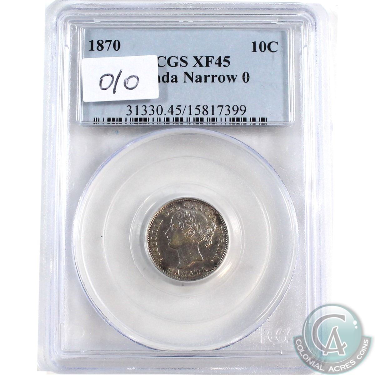 10-cent 1870 Narrow 0/0 PCGS Certified XF-45, Rare
