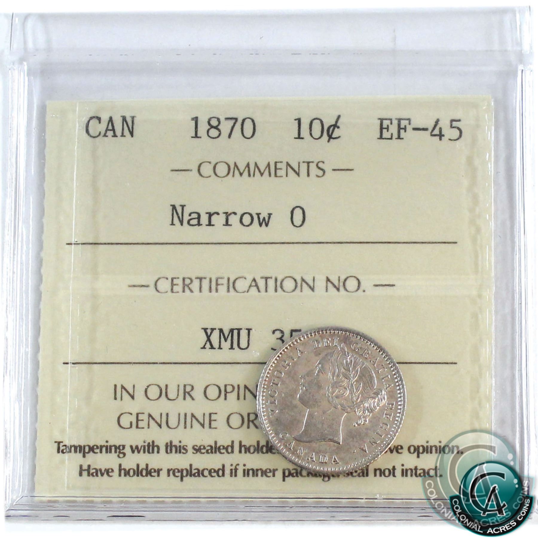 10-cent 1870 Narrow 0 ICCS Certified EF-45.