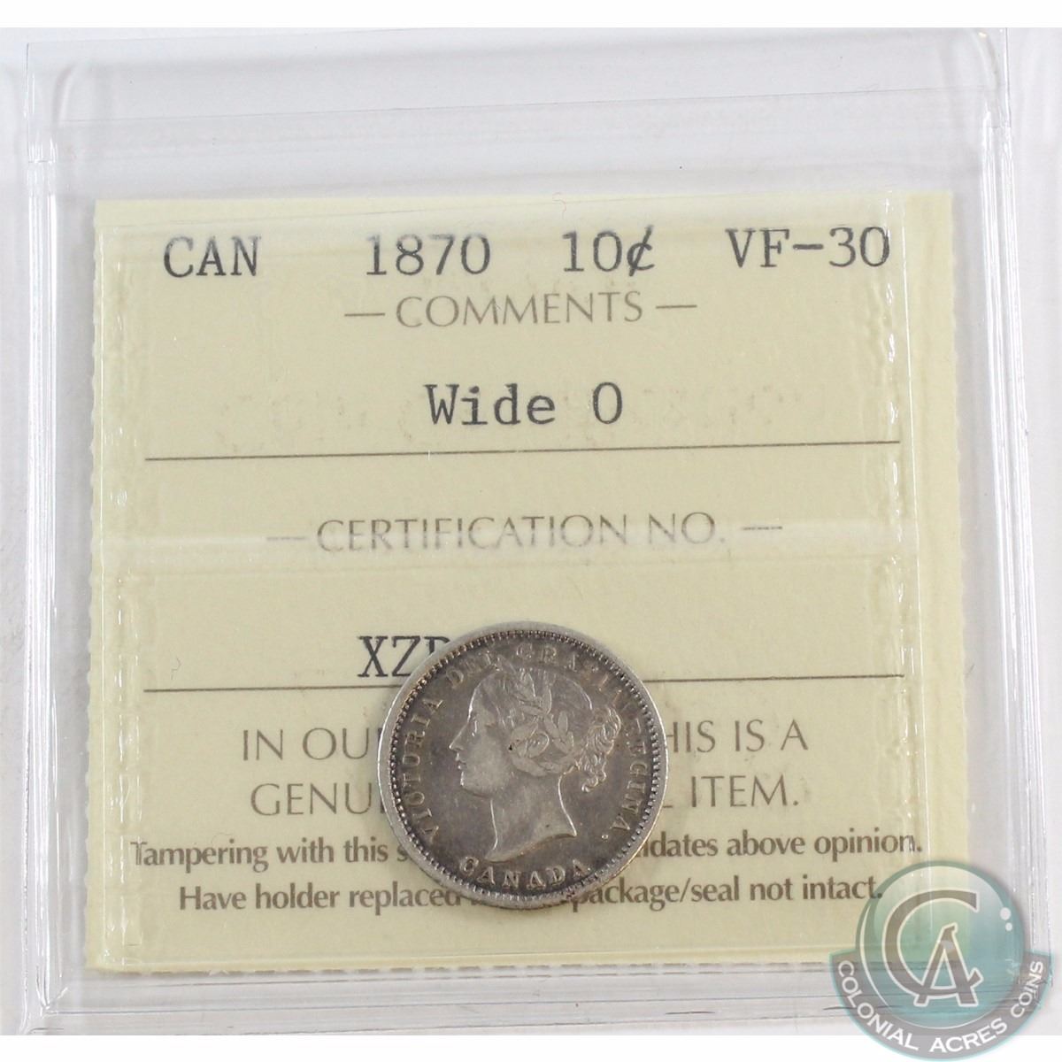 10-cent 1870 Wide 0 ICCS Certified VF-30