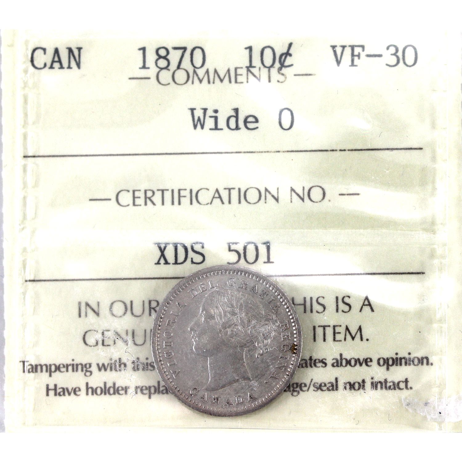 10-cent 1870 Wide 0 ICCS VF30