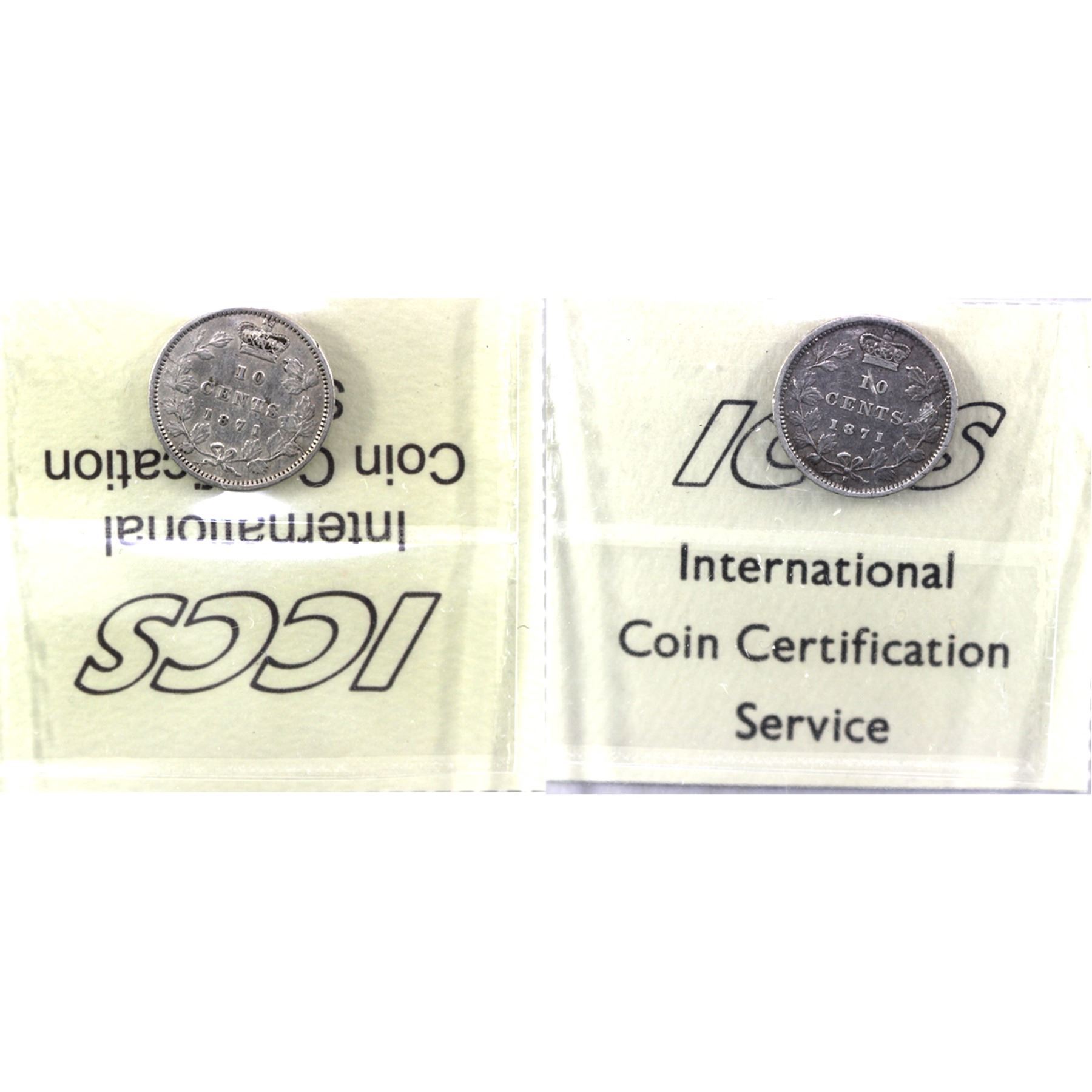 10-cent 1871 & 1871H ICCS Certified VF-20. 2pcs