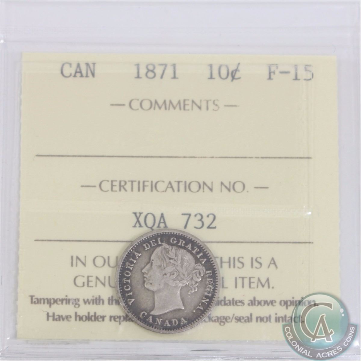 10-cent 1871 ICCS Certified F-15